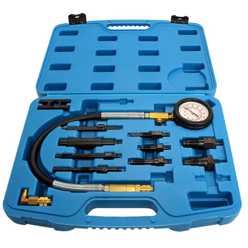 Компрессометр AE&T подойдет для дизельных двигателей легковых автомобилей. Задействуется в автосервисах и на станции ТО. В комплект поставки входят 14 адаптеров прижимного крепления. Для удобства использования, хранения и транспортировки модель дополнена пластиковым кейсом.